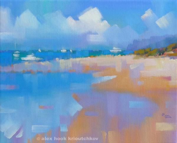Painting. Oil on canvas. One of a kind.Puerto mediterraneo, seascape, abstract seascape, beach, sea, playa, marina, boats, ships, expressionism, barcos, places, pueblos, abstract figurative, Mallorca,