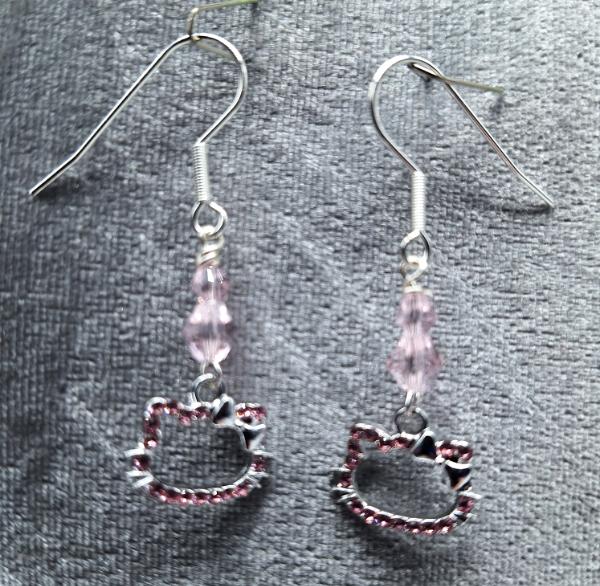 2" long. Ping rhinestone and crystal open face cats. Silver plated wires.