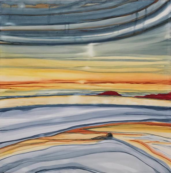 Linnea’s work is in the form of abstract landscapes and snapshots of details of nature, exploring ideas of seismic, using the organic attributes of Encaustic though the fluvial and sculptural qualities of wax. She uses the attributes of Watercolour and Encaustic to add complexity within the surface of her paintings to create an illusion of movement; stirring a memory or an emotion for the viewer. Carefully building layers upon layers of depth with transitions of slight sodalities, her work will change each time you study it.