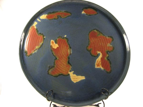 Large brownstone stoneware platter with "Alternate Earth" glaze design
