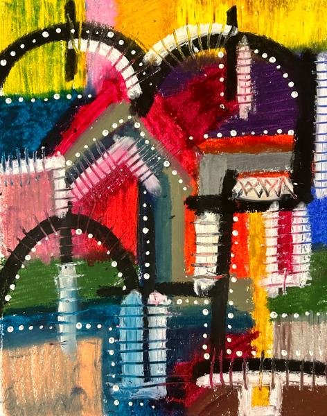 Architectural Elements (gifted) · · · · · · · · · · · · · · · · | Architectural Elements (gifted)$500 abstract from imagination, mixing my architectural background with my artistic side. 11x14 oil pastels and acrylics on paper.