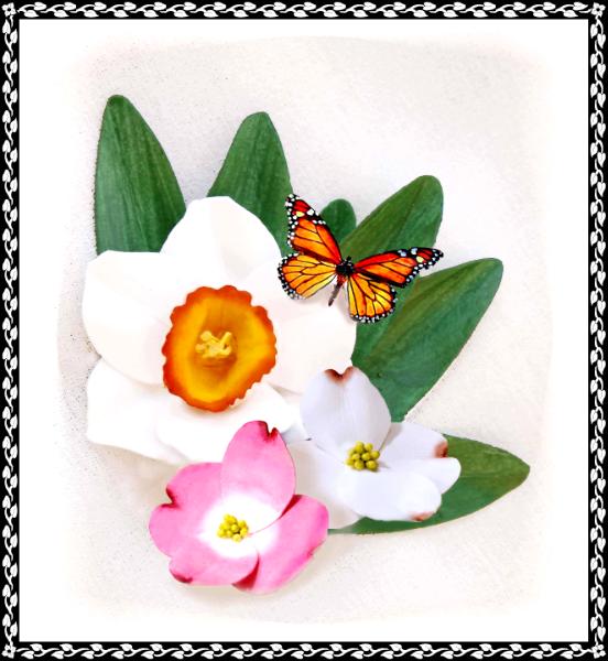 Narcissus, Dogwoods, Monarch Butterfly Pin or Hair Clip