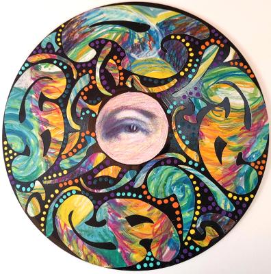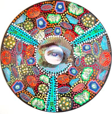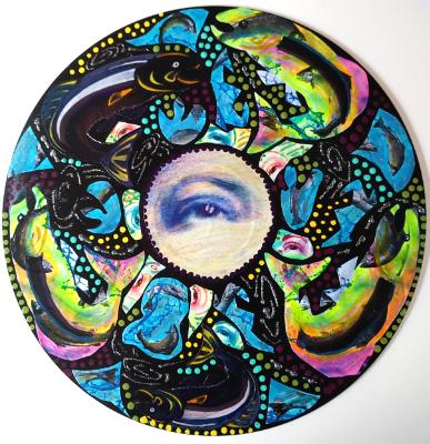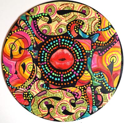 IN RECORD TIME takes us into the fast lane of a changing world. It also refers to the substrate of vinyl records used to spin a tale of a life with lots of moving parts. The records are my current work, but in another 20 years, who knows what hidden meanings they will reveal?