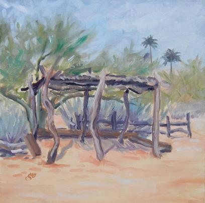 | | Ramada at Degrazia, S0LD12"x12" Oil on Stretched Canvas Gallery Wrap SOLD #Desert, #Palms, #ramada, #DeGrazia, #Tucson, #Arizona