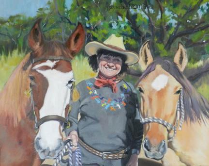 | | Silke & the Girls$2,500 24" x 30", Oil on Gallery Wrap Canvas WOMEN MAKING FACES Exhibit, Chandler Center for the Arts, August 2015 #Silke_Schneider, #Heritage_Breeds, #Mustangs, #cowgirl, #horses, #new_Mexico Be the first to post a comment.All artwork on this site is the sole property of the author/painter, Gay Scheibl. And as such it is protected by USA Federal Copyright law.