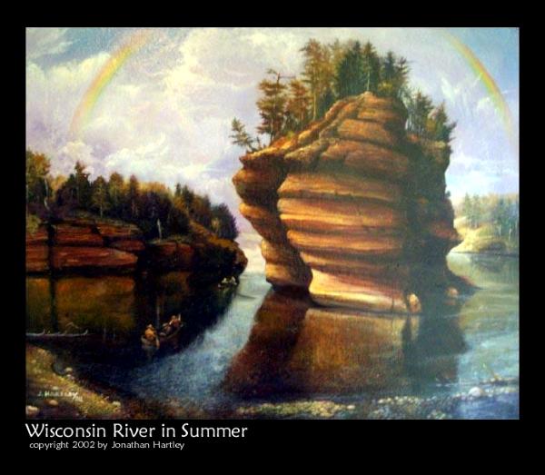 Summertime on the Dells of the Wisconsin River. Boatmen "crossing the river Styx" suggest a 19th century time period. The rock formation is somewhat exaggerated, so I consider this a "Romantic" piece