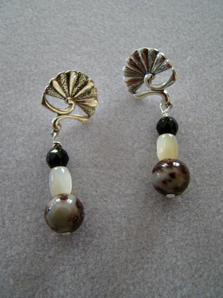 Jasper, Moonstone and crystal on fancy fan ear post