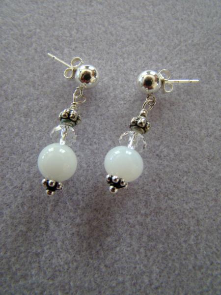 Moonstone,, Crystal and sterling bead on sterling post