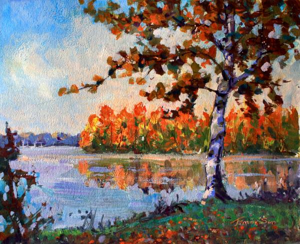 Golden birch leans into dawn’s soft flame, Lake mirrors fire in a hush so tame. Crimson and amber drift through the air, Autumn breathes peace with a painter’s care. Be the first to post a comment. |