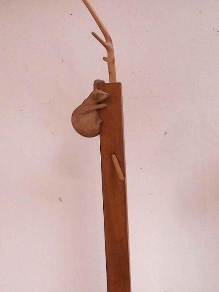 Animal climbing (?)treeClay, mahogany, sycamore?, oak base, 6 7/8" x 7 1/8" x 34 3/4"signed, 1981top branch slightly looseunavailable
