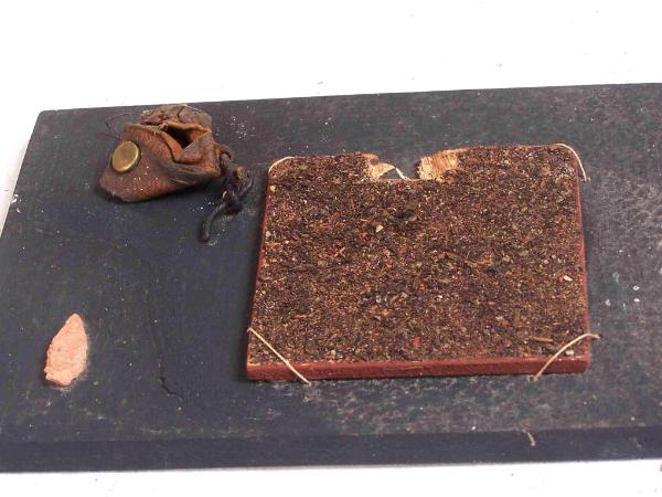 Gravel on board, leather, wire, clay, 8" x 6" x 1 1/4"