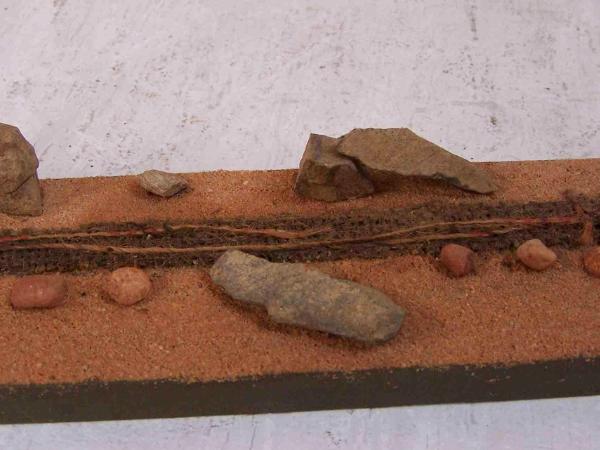 Rocks, gravel, fabric, string, 7" x 2 3/4" x 1 1/2"
