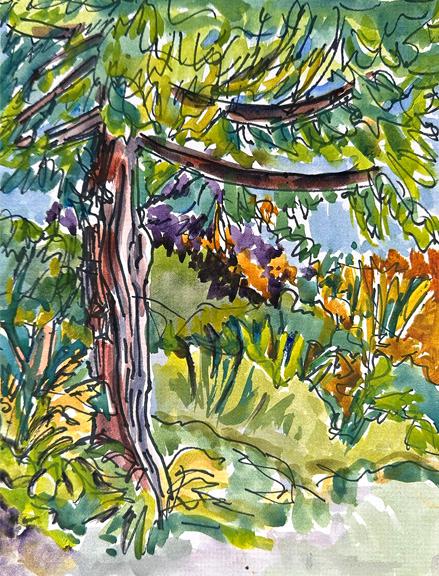 I love painting outdoors – soaking up the patterns, colors, rhythms, and textures of the natural world and capturing my initial attraction. My “plein air” watercolors and lifelong experiences in nature provide the genesis for abstractions.