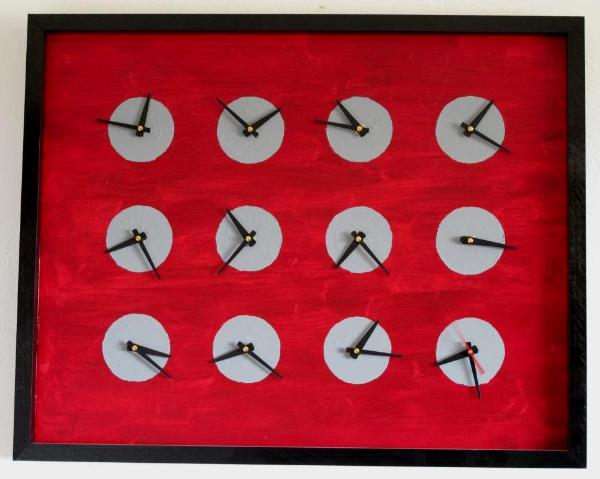| |  Twelve Clocks (Which One)  Parchment Clock  Surreal Timescape  Pendulum With Clock study  Red Dot Clock  Cut Off Clock  Burning Sky  Zig Zag Landscape with Tower  3 Time Options  Gears of Time  Wedges  Circles With Transparent Clock Tower  Round and Around  First Wood Clock  Three Square  About Time  Clock in Cosmos  3 Piece Clock  Wayward Hands on Brick Wall  Windmills  Untitled 2010 - 1 Be the first to post a comment. |