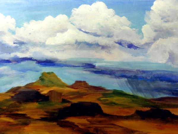 Today is my birthday and I still chase rain clouds. They are always quite interesting over the desert don't you think? I need to work slower on these studies for the value depth.