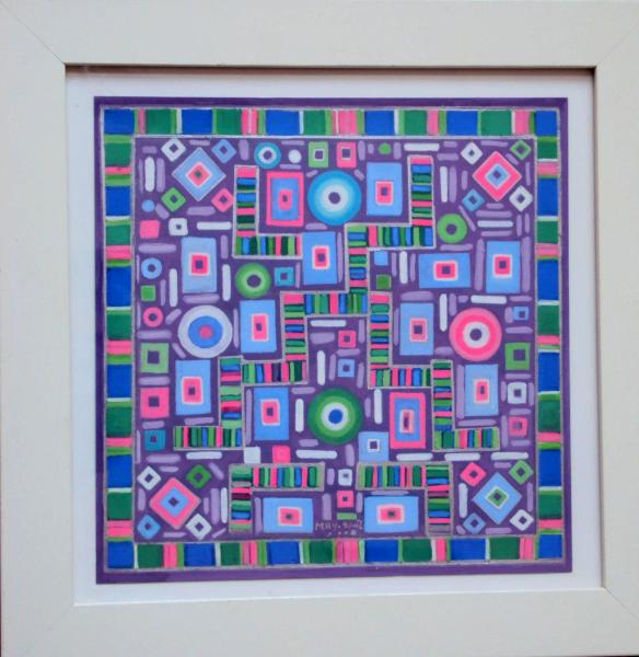 The bright  and vivid colors  in May Alsouz’s paintings  are art for the sake of art only . They  do not bear  connotations and concepts  of a certain organization  or a  special society  . Her art does not  Symbolize  a particular group of people or a party. The colors May Alsouz uses in  most of her paintings are primarily inspired by the pure , vivid  colors and   Beautiful symbols  that are heavily used In daily life in the countryside of her original country, Iraq.