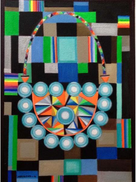 The bright  and vivid colors  in May Alsouz’s paintings  are art for the sake of art only . They  do not bear  connotations and concepts  of a certain organization  or a  special society  . Her art does not  Symbolize  a particular group of people or a party. The colors May Alsouz uses in  most of her paintings are primarily inspired by the pure , vivid  colors and   Beautiful symbols  that are heavily used In daily life in the countryside of her original country, Iraq.