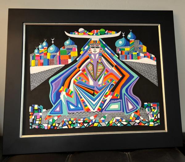 The bright  and vivid colors  in May Alsouz’s paintings  are art for the sake of art only . They  do not bear  connotations and concepts  of a certain organization  or a  special society  . Her art does not  Symbolize  a particular group of people or a party. The colors May Alsouz uses in  most of her paintings are primarily inspired by the pure , vivid  colors and   Beautiful symbols  that are heavily used In daily life in the countryside of her original country, Iraq.