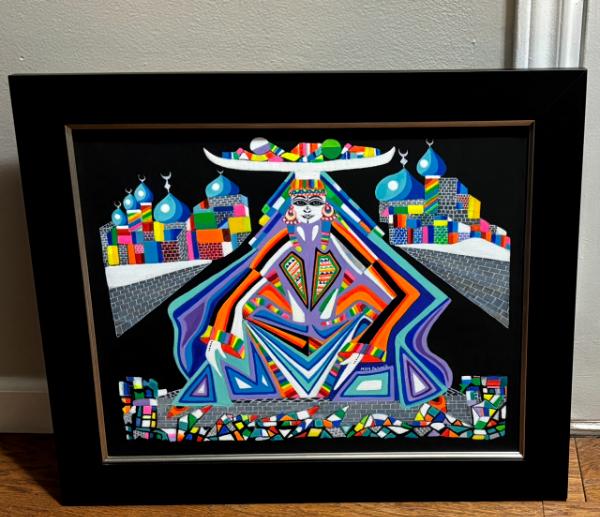 The bright  and vivid colors  in May Alsouz’s paintings  are art for the sake of art only . They  do not bear  connotations and concepts  of a certain organization  or a  special society  . Her art does not  Symbolize  a particular group of people or a party. The colors May Alsouz uses in  most of her paintings are primarily inspired by the pure , vivid  colors and   Beautiful symbols  that are heavily used In daily life in the countryside of her original country, Iraq.