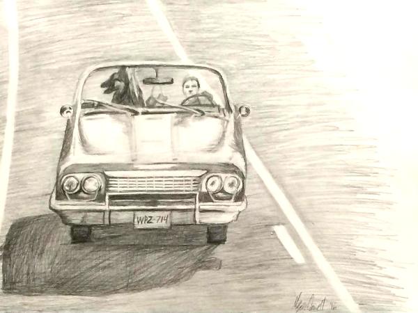 - Scene from a short film called The Renovation from Adirondack Film Fest 2016. I was honored to be a part of the Tooning In Art Gallery, from which this piece was sold.- Graphite, and ink on bristol; 4.5" x 6"; 2016. Original not available. - 9" x 12" print $10 USD each.