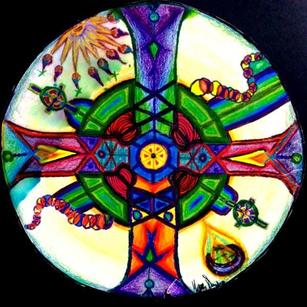 - Non-symmatry. (This piece has suffered some water damage and will not be for sale until I make a digital copy to edit out or work with the bleeding.)- Ink and colored pencil on bristol paper; 2002. Original available but damaged.- 9" x 12" prints; $10.00 USD each.