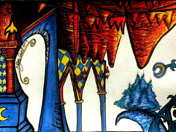 - Ink on watercolor paper; 4 1/2" x 6"; 2019. Original not available.