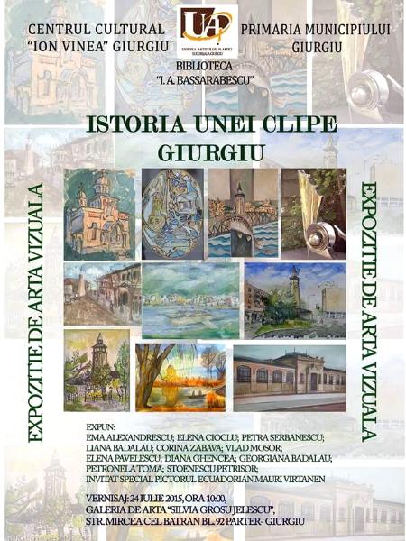 The poster of the group exhibition ISTORIA UNEI CLIPE GIURGIU that took place in Giurgiu, Romania.