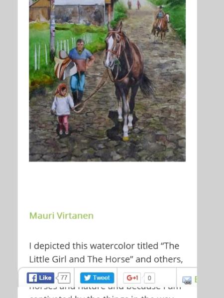 "MAURI VIRTANEN is made to shine, this is told by his unblemished traces and by his powerful creative spirit. This is why I appeal to his enormous faiht for him not to desmay, because beyond his talent is consistency wich will consolidate without any doubt his steps in this universe that only the chosen have a space".