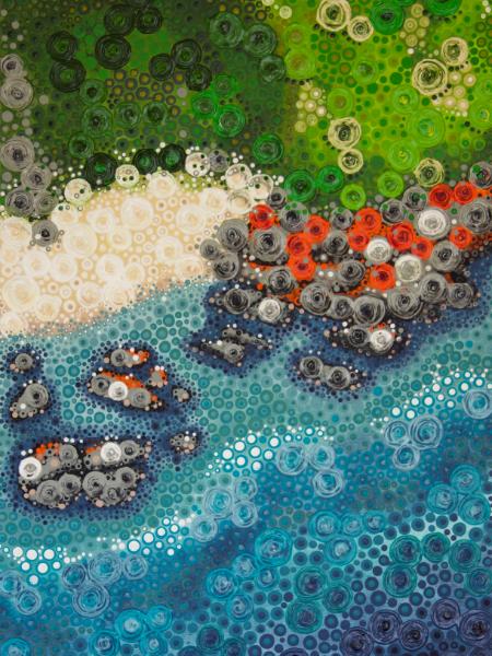 Bay of Fires - East Coast Ornella Imber lives on the idyllic East Coast of Tasmania. She is a coastal dweller and if you have ever visited this picturesque part of the world it becomes obvious where Ornella gains her inspiration. Vibrant colours, delicate patterns and sweeping textures are the artistic tools that help to create paintings of exotic beauty. With painterly exuberance she produces images that will brighten any space.