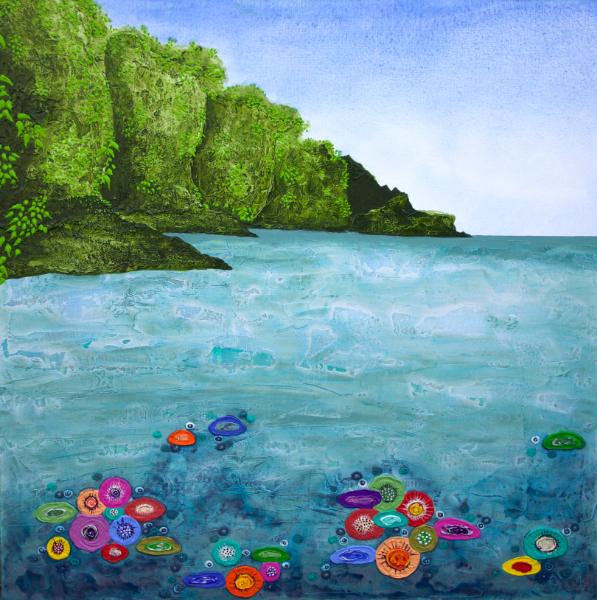 Ornella Imber lives on the idyllic East Coast of Tasmania. She is a coastal dweller and if you have ever visited this picturesque part of the world it becomes obvious where Ornella gains her inspiration. Vibrant colours, delicate patterns and sweeping textures are the artistic tools that help to create paintings of exotic beauty. With painterly exuberance she produces images that will brighten any space.