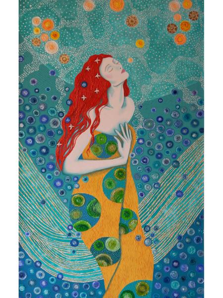Inspired during a three week stay at the magnificent Bay of Fires, Tasmania. The colours of the sea, the red lichen covering the rocks, shooting stars and warm summer sand. The endless summer of 2012.