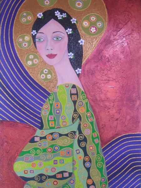 Beautifully painted Lady, rich colour,texture and pattern. Stunning gold detail.