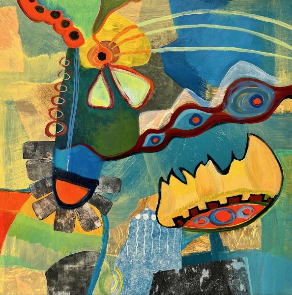 Modern Abstract Art for sale. Artist teaching printmaking.