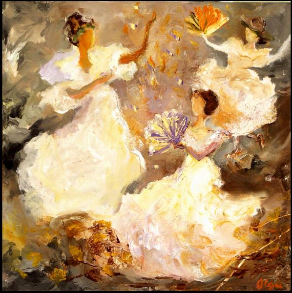 She calls what she does color dance because it appears, at least to her, that the color is, in fact, dancing. She hopes art lovers feel the same, that they're willing to share a waltz or a tango with her art...."