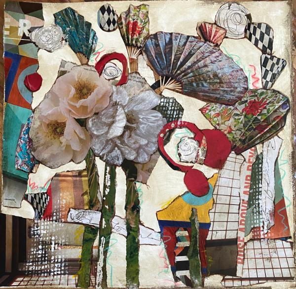 Magazine paper and acrylic collage