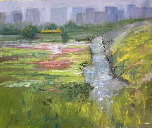 I have been working on a new painting, practicing mixing greens. 11 x 14 Oil on canvas