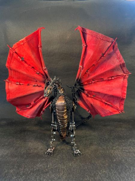 nails, concrete wire, nuts and bolts, copper plumbing, painters drop cloth, springs, bike chain, ball bearings 30"x35.5"x6" (max size, can be moved to any position, Smaug is completely articulated!)