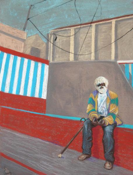 Artist directory :: "BEEDEE EYE GALLERY " Artwork by Barbara Bell Dubovsky...Pastel on Mi Teintes paper. 18' x 24". Portrait of an elderly man I saw while in Belize. Worked from a photo. His snowy white hair made him an interesting subject.