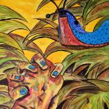 | | What become apparent during the first few months of 2010, my whimsical side surged to the forefront. I continued to explore a narrative line, but with quirky twist. To use a literary term, many of these paintings explored the realm of magical realism.