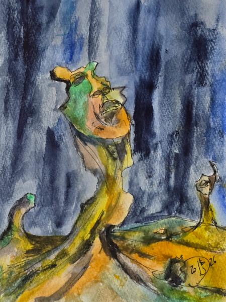Artist directory :: Art of Duane Kirby JensenAs furry mammals devour your mushroom flesh, will many one hear you scream. ©2026, By Duane Kirby Jensen 5.5 x 7.5, watercolor on watercolor paper