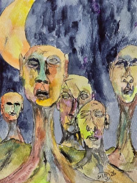 Artist directory :: Art of Duane Kirby JensenHumanities continues to evolve into a new species of mushroom. ©2026, By Duane Kirby Jensen 5.5 x 7.5, watercolor on watercolor paper