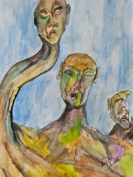 Artist directory :: Art of Duane Kirby JensenSomethings eating thenew species of mushroom. ©2026, By Duane Kirby Jensen 5.5 x 7.5, watercolor on watercolor paper