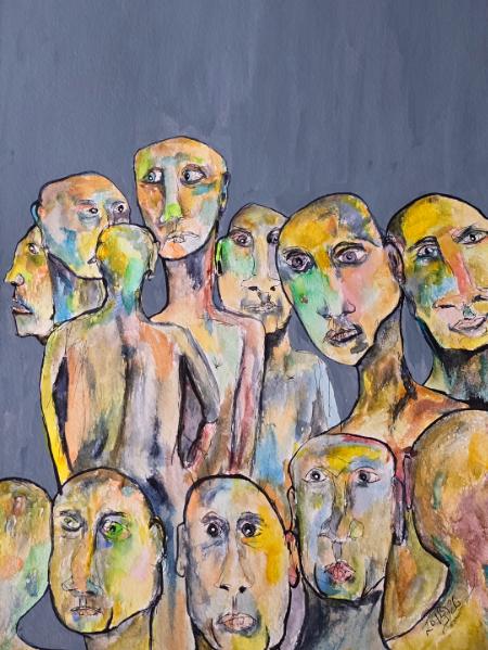 I am start this year on a roll and that momentum has not slowed. This year I am back painting moments as reflected in faces. |