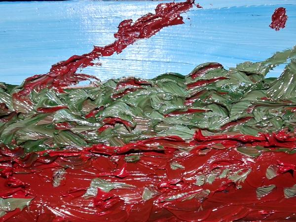 This is on a 60" x 60" canvas, with oils laid on from the tube, with palette knives and paintbrushes and squeegees.