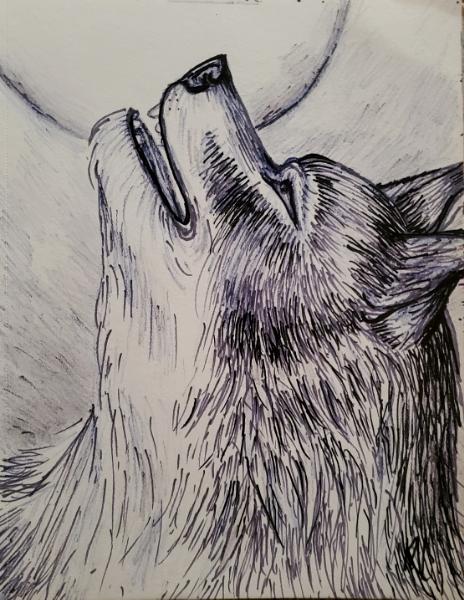 Artist directory :: katnaj Artworks *Colors in Harmony* Earth, Life,...Sharpies Ink Grayscale and Monochromatic Wolf 9" x 12" Mixed Media Paper