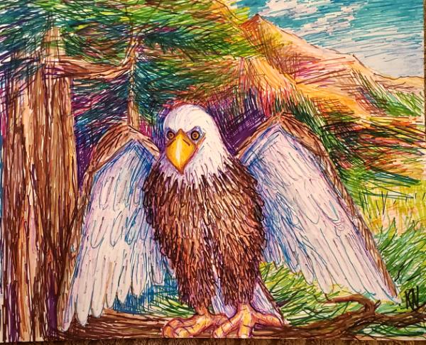 Artist directory :: katnaj Artworks *Colors in Harmony* Earth, Life,...Sharpies Ink Tones of Earth and Bald Eagle landscape 14" x 17" Mixed Media paper