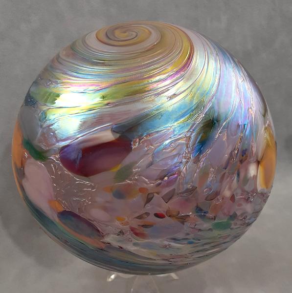 Artist directory :: Mark & Marcus Ellinger/Glass Quest Hand Blown Art Glass...#01102603 Lg Float Confetti design 7.5'' $90.00