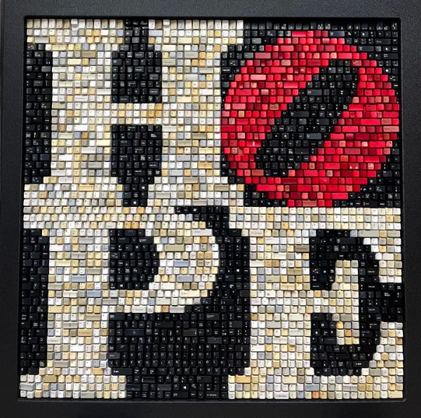 The innovative artist Doug Powell creates the illusion of three-dimensional form through the use and arrangement of recycled, or up cycled, computer keyboard keys. Up cycling has a positive environmental impact due to the rescue and re-purposing of manufactured objects. The reuse of materials has been employed by artists throughout history from Amish quilters and American folk artists to Modern Masters, such as Picasso, Joseph Cornell, and Robert Rauschenberg, all of whom have reused materials or found objects to create new, more complex works of art.