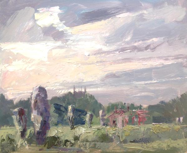 Avebury, Summer Evening Light. Oil on Board 10" x 12"