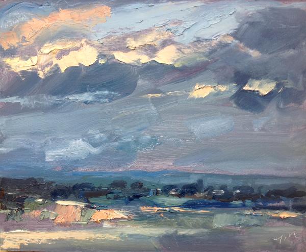 Sunset No 3 from Blunsdon hill 10"x 8" oil on board
